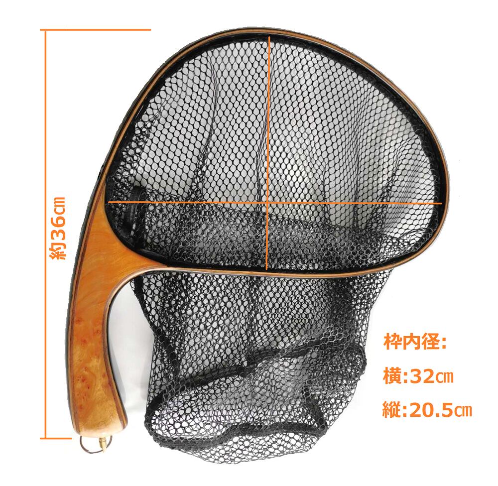 ランディングネット フライ ラバー ネット 渓流 サイズ (L) カーブ型 トラウト タモ網 木製フレーム 曲柄 ソフトラバーメッシュ コンパクトで軽量 魚を傷つけない 管釣り 餌釣り フライフィッシング トラウト マス釣り | 遊友工房