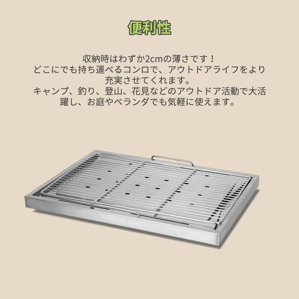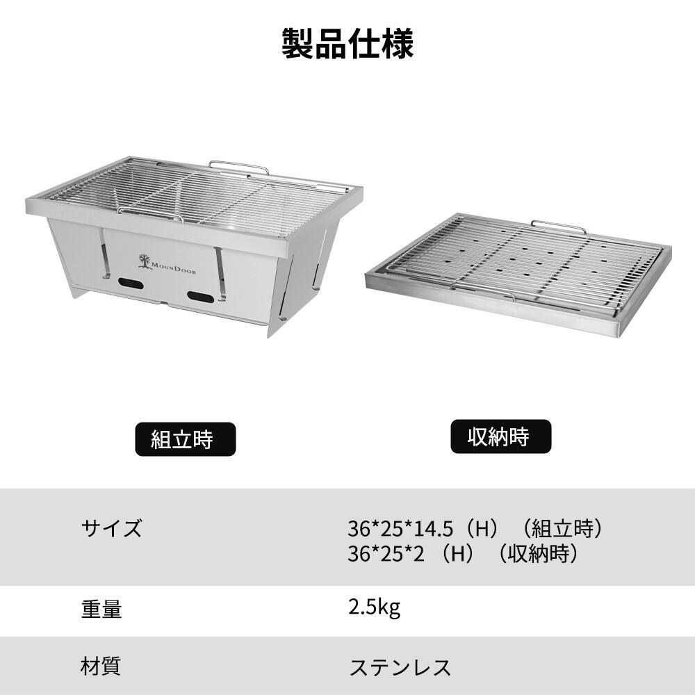 【頑丈&コンパクト】高品質なステンレス製で、錆びにくい、変形しにくい、耐久性が抜群です。収納後のサイズは36*25*2cm(H)で、スペースを取らず、持ち運びが便利です。